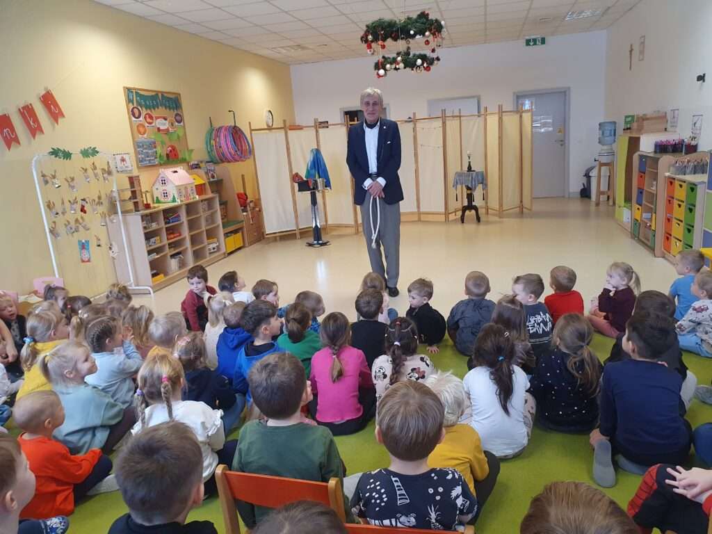 We wtorek, 13 stycznia 2026 r. gościliśmy w naszym przedszkolu iluzjonistę, który swoimi czarami przeniósł dzieci w świat dobrej zabawy i wspaniałego humoru. Przedszkolaki z dużym zaciekawieniem i zaangażowaniem obserwowały każdy ruch czarodzieja. Spotkanie z iluzjonistą bardzo się wszystkim podobało. Dostarczyło dzieciom wielu niezapomnianych wrażeń, o czym świadczyły uśmiechy na twarzach oraz gromkie brawa.
