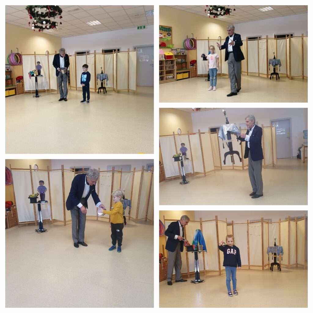 wszystkich we wspaniały humor. Dzieci z dużym zaangażowaniem obserwowały każdy ruch iluzjonisty, mając nadzieję na „rozpracowanie” choćby jednej sztuczki. Chętnie nagradzały każdy pokaz gromkimi brawami. Spektakl prowadzony był w warunkach reżimu sanitarnego dla każdej grupy oddzielnie. Pokaz iluzji dla dzieci został w całości sfinansowany ze środków Rady Rodziców.