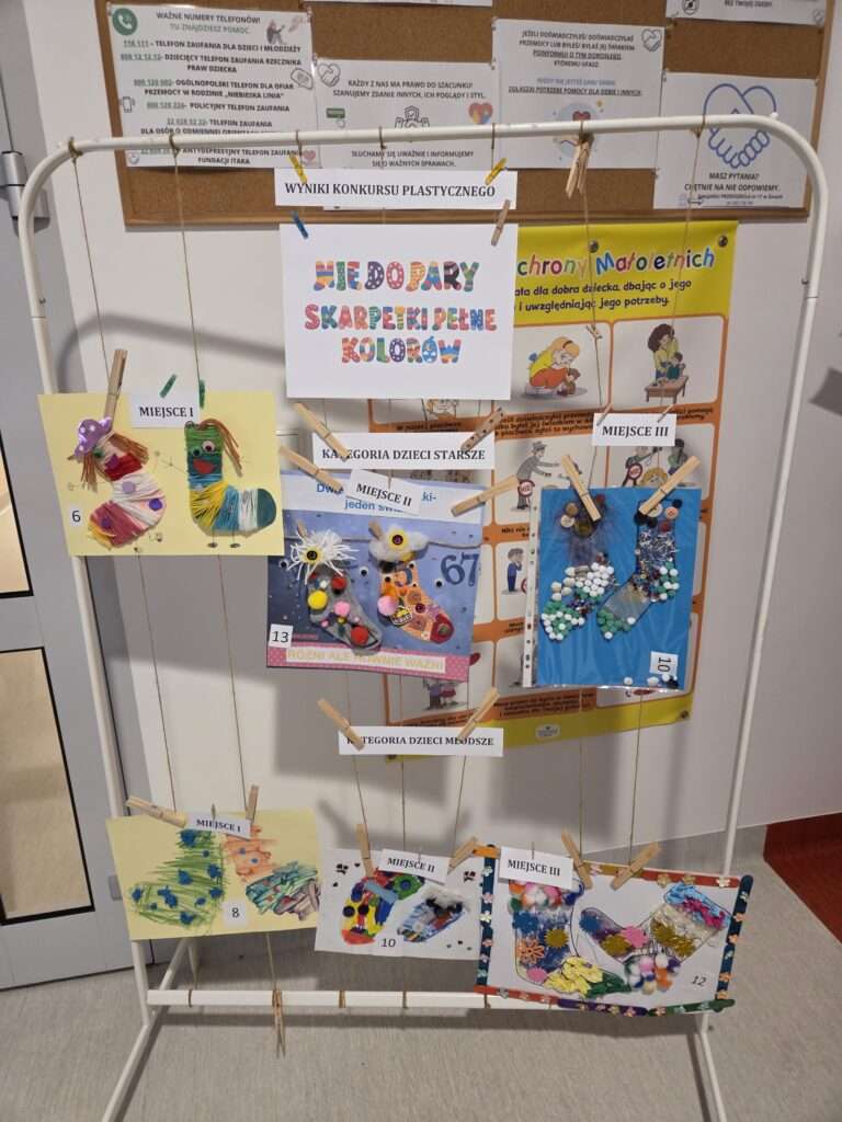 Zadaniem jest wykonanie pracy przedstawiającej dwie różne, kolorowe skarpetki (format A4 lub A3, technika dowolna). Termin składania prac do 20 marca.
