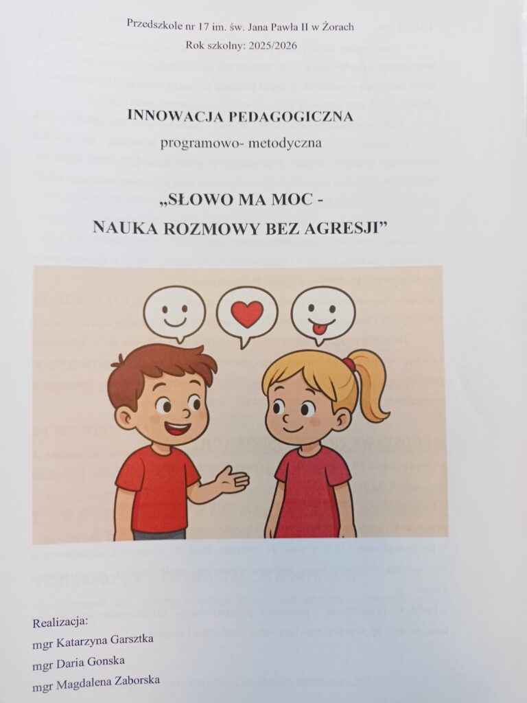 Udział w innowacji „Słowo ma moc” – grupa „Pszczółki”.
