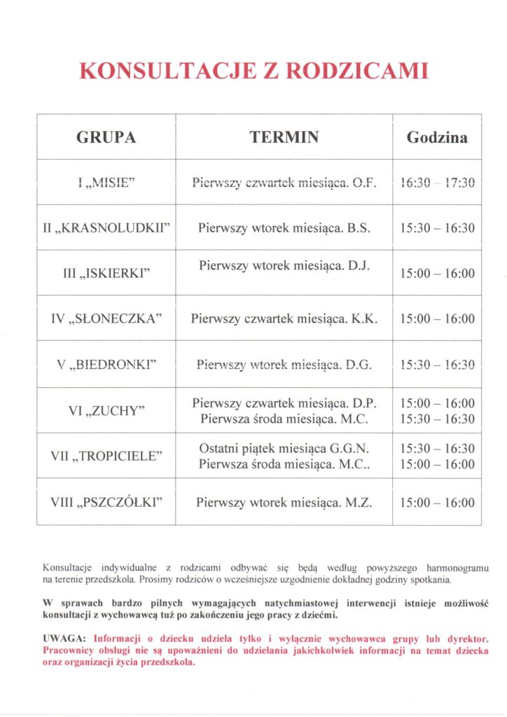 KONSULTACJE INDYWIDUALNE Z RODZICAMI